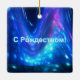 A pink and blue, fractal interpretation of the Northern Lights reflected on the surface of the sea. Qaanaaq is a settlement in northern Greenland. Cyrillic text reading "S Rozhdestvom" (С Рождеством - A Russian Christmas greeting) appears in glowing blue and white.