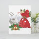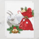 Beautiful Saanen doe with her Holiday bag of goodies and bells- she is looking around at the candy cane she is about to grab - adorable for goat lovers everywhere