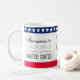 Sacramento is my home town stylish patriotic coffee mug for anyone. A black text Sacramento, California, United States, geographic location coordinates on two sides of a mug. "Proud to be an American" image in the centre. The image is a composition of the white star over the USA flag-covered map of America and a stylised text. CONSTANTINE'S HOME TOWN template text over and under the central image. The USA flag blue colour ribbon, decorated with an image of white stars in a row, goes along the top rim of a mug, the United States flag red colour ribbon at the bottom of the mug. Customisable. You can change all the images and you can change or delete two template texts independantly. If you need to relocate images, change the typeface and the colour of the font, please, use the Personalise button. Be creative, customise, buy the beautiful gift for your family members, friends, or for yourself, enjoy, and be happy!