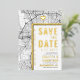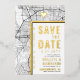 A unique save-the-date invitation card featuring a map of the city of Sacramento. It features several unique features that make an impression on your future guest, including the names of the bride and groom, the city name, and the words "Save the Date" in gold foil. A gold foil heart symbol pinpoints your location of love in the city. The city map is on the front and reverse sides and can be scaled and moved around. All elements of this invite are unlocked, so have fun being creative and making it fit your style.