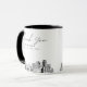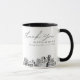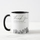 Modern Sacramento skyline coffee mug favour gift with "thank you" script. The design showcases a stunning sketch with the ability to customise your names and exact location. Enter the Zazzle design tool for additional customisations.