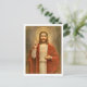 Vintage religious Sacred Heart image. Christ surrounded by glowing halo and beams of light.