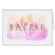 * Healing Energy Enhanced Crystal Watercolor Gradient Blush Pink and Lavender Blank Greeting Card designed for sending peace, love & light to friends or family. The word SACRED is prominently placed on top of the crystal watercolor. *