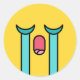 Show how you feel with a custom round sticker of a sad crying emoji.