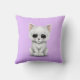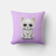 This cute design features a small white kitten with large black eyes. The cat is sitting down with its paws beside each other and is looking forward with its head slightly tilted to one side. The over sized head and small body along with the details in the fur create a beautiful combination of a cartoon and realistic look. This unique and adorable kitten design is perfect for all cat and pet lovers.