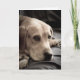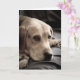 Missing you greeting card featuring a photograph of a cute puppy with sad eyes, the perfect way to say I wish you were here.