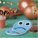 These cute paper plates make the perfect party supplies for emoji themed birthday parties. Features a hand-drawn style illustration of a blue sad face emoji or emoticon with big google eyes and a frown.