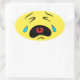 This sad little emoji face is having a bad day. Crying face with a bright yellow background.