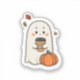 Sad Ghost with Coffee Sticker – Cute Autumn Carto