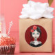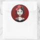 This unique design features a sad looking girl with two red roses in her hair. Large blue eyes and a small mouth gives the design a highly stylised and beautiful look. Strands of long black hair can be seen flowing down from the girls head onto the pale white skin on her chest. Three black tribal roses with leaves and swirling lines are tattooed on the girls shoulder which echoes the flowers in her hair.