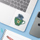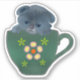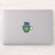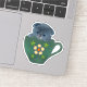 This little cutie has gotten himself into an awful bind.  Paired with the bright green coffee mug design, makes it an amusing visual.  A wonderful way to add appeal to your laptop, journal or water bottle
