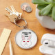This keychain features the sad face of a white rabbit. This rabbit has a big frown on its face because it is a lab rabbit that has had cosmetics tested on it. The whites of its eyes are red and swollen. The design has been created to bring to attention the unnecessary suffering caused by the testing of cosmetics on animals. The black text between the ears of the bunny says, "vivisection must stop"