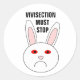 This set of round stickers features the sad face of a white rabbit. This rabbit has a big frown on its face because it is a lab rabbit that has had cosmetics tested on it. The whites of its eyes are red and swollen. The design has been created to bring to attention the unnecessary suffering caused by the testing of cosmetics on animals. The black text between the ears of the bunny says, "vivisection must end" If you agree then you need some of these stickers to stick wherever you go and spread the message.