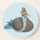 3D digital render of a beautiful sad mermaid sitting on a stone on blue background
