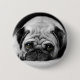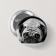 Black and white photograph of a very adorable little pug with soulful brown eyes.