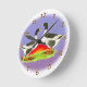 Great quality clock and very well made. Just what I was looking for to finish my hall off. Looked in loads of other websites and eventually found exactly what I was looking for at Zazzle. Designe and colour is perfect. I just love it. Bought the medium size and fits well for where I was placing it.