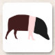This awesome cork coaster features a cartoon type representation of the Saddleback pig, my favourite rare breed of British pig. It is easily recognised by the pink saddle pattern that gives the breed its name. The rest of the pig is black.