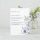 The wedding details enclosure card features a stunning floral design with blue and ivory flowers, complemented by green foliage on a white background. The word “DETAILS” is prominently displayed at the top, making it clear and easy to read. This card is perfect for providing guests with essential information about the wedding reception and accommodations, combining practicality with a beautiful aesthetic. It’s an ideal addition to any wedding invitation suite, offering style and functionality.
