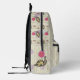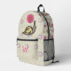 Sadie the paisley snail smiles as she scoots along in her striped shell under her favourite pink flowers. A pattern of vines and funky circles sits on a pale cream base to create a cute backdrop for the scene. Customise the initial on the front pouch of this backpack with your own monogram to make this accessory uniquely yours.