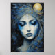 Eerie masterpiece, monochromatic palette dominated by deep blue and black, surreal sadness image. Digital image.