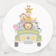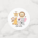 Cute gender-neutral baby shower table decor. This confetti set features various illustrations of baby jungle animals (lion, elephant, zebra, monkey and giraffe), a safari vehicle and a paw print.