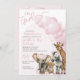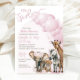 Get ready to embark on a whimsical and enchanting journey as we celebrate the arrival of a beautiful baby girl! Introducing our captivating and customisable Baby Girl Shower Invitation Template, featuring a delightful fusion of Safari animals, Boho Floral elements, and Pink Balloons Arch decor that promises to set the stage for a truly magical celebration.