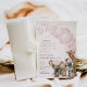 🎈 Pink Balloons Arch Decor: A graceful arch of pink balloons frames your invitation, evoking a sense of joy and festivity that perfectly complements the celebration of a precious baby girl.