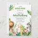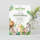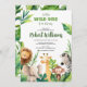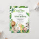 Safari African animals watercolor cute baby shower invitation, gender neutral, with tropical leaves