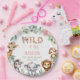 Safari Animal Wild One Blush Pink Floral Birthday Paper Plate