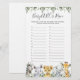 Safari animals themed baby shower ABC's race game card features a watercolor safari animals illustration and watercolor greenery eucalyptus garland and elegant handwritten style font.