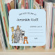 Cute safari animals baby shower bookplate sticker. The background colour can be changed or deleted. Perfect for baby's first library or for a first birthday party!