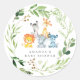 Add the perfect finishing touch to your baby shower with this Safari Animals Baby Shower Classic Round Sticker! Featuring adorable watercolor safari animals — including a lion, elephant, giraffe, and zebra — surrounded by lush jungle greenery, this sticker is a charming way to tie your theme together.