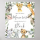 Give your guests a lovely direction with our safari animals decorate a block sign, featuring watercolor greenery eucalyptus garland and elegant handwritten style font.