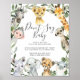 Give your guests a lovely direction with our safari animals don't say baby shower activity sign, featuring watercolor greenery eucalyptus garland and elegant handwritten style font.