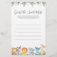 Safari animals themed baby shower guess the sweet mess game card features a watercolor safari animals illustration and watercolor greenery eucalyptus garland and elegant handwritten style font.