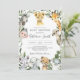 Invite your guest with our elegant and modern safari animals baby shower invitation features greenery eucalyptus garland and watercolor safari animals. Personalise with your baby shower details in simple layout and elegant handwritten style font.
