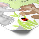 Safari animals which includes monkeys, giraffe, zebra, hippo, lion, tiger along with birds, bees, and ladybugs ©Graphic Garden & Decamp Studios