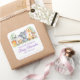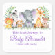 Watercolor Safari Baby Animals Bookplate Labels. Baby Animals include Elephant, Monkey, Giraffe, Rhino, Zebra and Lion on fern leaves. Watercolor Botanical Greenery. Purple Violet Text. Add Name.