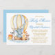 Safari Animals Blue Air Balloon Clouds Baby Shower Invitation