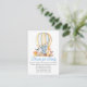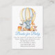 Modern Elegant Watercolor Baby Animals Hot Air Balloon Baby Shower Books For Baby Enclosure Card. Baby Animals include Elephant, Monkey, Giraffe, Rhino, Zebra and Lion. Silver Grey and Blue Text.