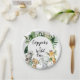 Green and gold foliage and four cute watercolor safari animals birthday party plate. All text is editable.