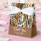 Delve into the heart of the wilderness with these safari-inspired thank you favour boxes, adorned in a lavish palette of gold, brown, black, and white, capturing the essence of the animal kingdom's fur prints. Ideal for gender-neutral baby showers set against a safari backdrop, "wild one" birthdays, bohemian bridal showers, or any African-themed festivities. Whether you're hosting a wildlife gala or just aiming to present a gift with flair and distinction, these boxes are sure to spotlight your impeccable taste.
