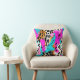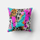 Beautiful safari animals' fur prints pattern throw pillows in neon-like luminous colours like fuchsia, bright blue - cyan.