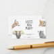 Safari Jungle baby shower invitation featuring a watercolor illustration of a giraffe, leopard, elephant and zebra. "A little wild one is on the way." Matching items available.