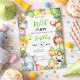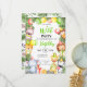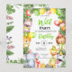 Invite your little one's friends to a delightful birthday celebration with these charming kid's party invitations! These invitations feature a beautifully designed border of green leaves, adorable wild animals each wearing festive party hats, and holding gifts or balloons in a watercolor style. This fun design adds a whimsical touch that will captivate children and adults alike.