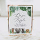 Invite baby shower guests to participate in the diaper raffle with this safari themed sign, featuring watercolor animals and tropical greenery.