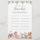 Safari animals themed baby shower guess what's in the diaper bag game card features a watercolor safari animals illustration and watercolor greenery eucalyptus garland and elegant handwritten style font.