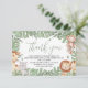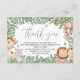 A safari-themed baby shower thank you card featuring watercolor jungle animals and tropical greenery. Designed to express appreciation for guests’ presence, gifts, and warm wishes. A thoughtful addition to Wild One, jungle, or gender-neutral baby shower themes and a coordinated stationery set.