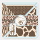 Giraffe, zebra, leopard, cheetah prints with lace trim ribbons and a giraffe and pacifier logo.