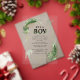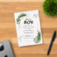 Wild forest themed giraffe, and elegant boys safari animal baby shower invitation featuring a giraffe, an elephant, gold foil and green leaves. Perfect for a boy's baby shower invitations